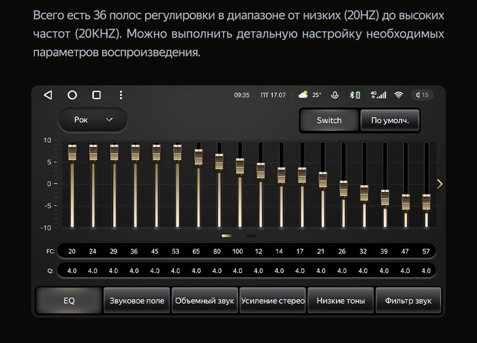 Эквалайзер | 16 полосный. Звуковой процессор DSP. |
