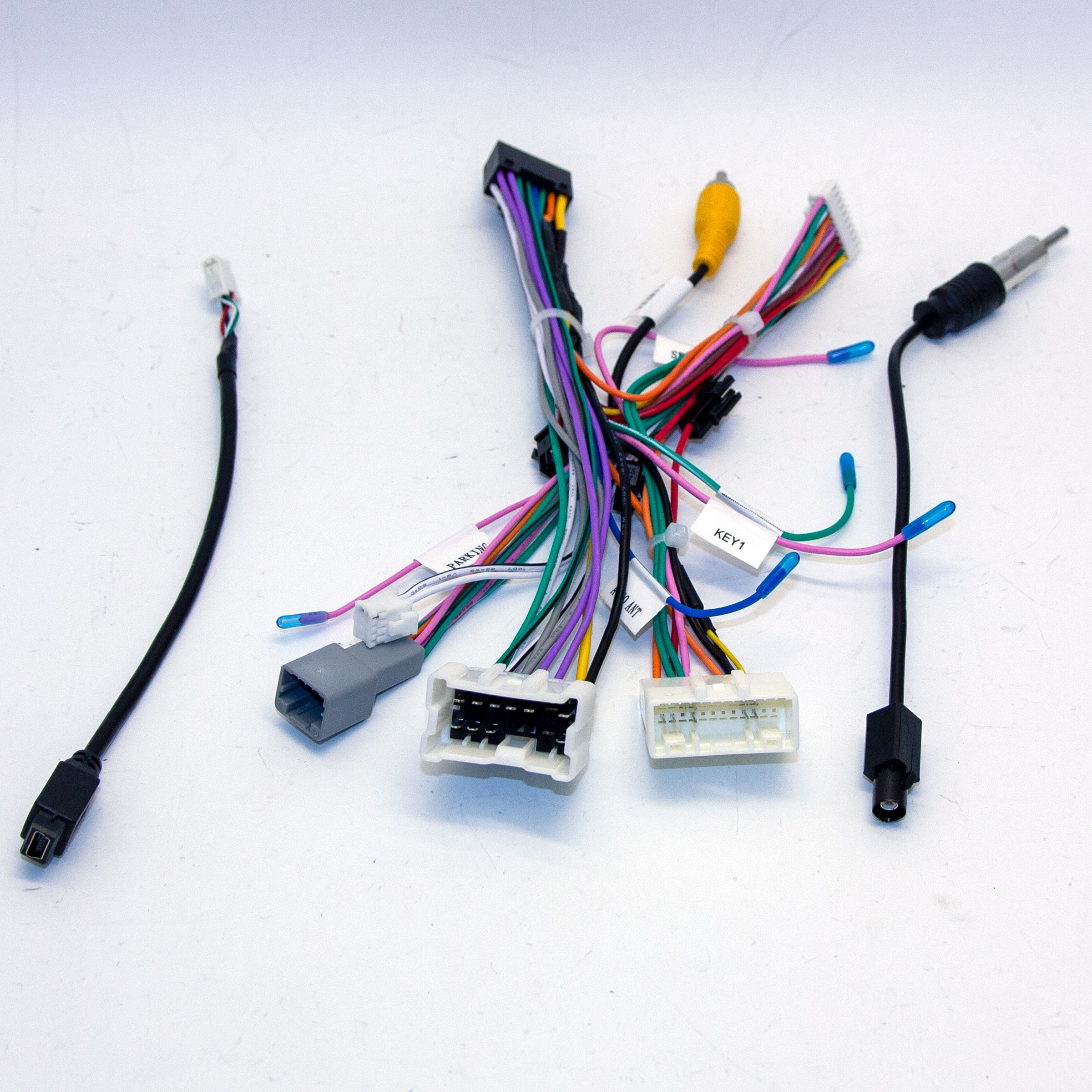 Комплектация: Головное устройство, основная колодка проводов, антенна GPS, антенна 4G, кабели RCA (5.1), 3 кабеля USB, выносной микрофон, винты для крепления.